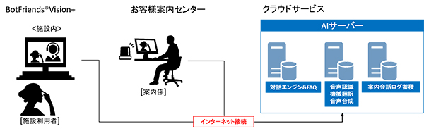 凸版印刷は18年11月から多言語AI案内サイネージ「BotFriends Vision(ぼっとふれんずビジョン)」を提供してきた。駅や公共・商業施設に設置されていたが、従来のBotFriends Visionによる無人AI案内では、AIに学習させていない内容や、複雑な内容に回答することができず、利用者は窓口の説明員に直接たずねることが必要だった。また直近のコロナ禍によって公共・商業施設の接客において非対面・非接触のニーズが生まれていたという。