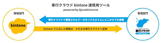 奉行クラウドのデータをkintoneで直接参照・共有でき、kintoneで入力した内容を奉行クラウドに自動で書き込むなど、さまざまなデータ連携機能を備えている。ツールの提供基盤として、JBATのクラウド連携プラットフォーム「Qanat Universe」を活用し、バックオフィス業務とフロント業務の融合が全ての企業で実現できる。この基盤は、OBCが奉行クラウドとさまざまなサービスとのデータ連携を目的に「奉行クラウドApp Connect」でも採用している。