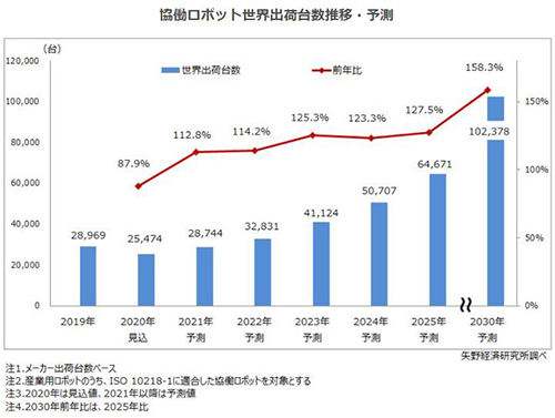 矢野経済が協働ロボット世界市場を調査、20年はコロナの影響などで減速し台数は2万5000台に