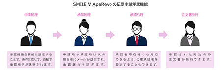 まず、発注伝票発行と「SMILE V ワークフロー」の申請・承認機能の連携を実現。日々の伝票入力操作を損なわず、スムーズに上長などの確認・承認を得ることができ、ヒューマンエラーなどの遅延リスク回避につながる業務フローを簡単に構築できる。さらに、担当者判断による過剰発注も防げるため、効率良く商品を回転させる、無駄な在庫を抱えない、といった重要な要素に対応し、適正な在庫運用を支援する。