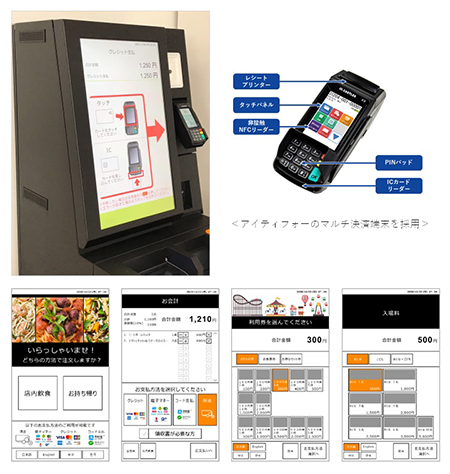 キャッシュレス機能付自動券売機は、東芝テック製のタッチパネル式券売機に、アイティフォーのiRITSpay決済ターミナルを組み込んだもので、クレジットカード(磁気カード・ICカード、非接触ICカード)、デビットカード、プリペイドカード、電子マネー、コード決済に対応している。飲食店やスポーツ施設、行政窓口などに設置する「前払券売機」と、ゴルフ場などに設置する「後払自動精算機」の2種類があり、さまざまな業態の事業者での利用が見込まれている。