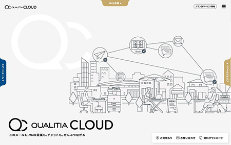 QUALITIA CLOUDは、「新しいメール」「新しいウェブ会議」「新しいチャット」のリモートワークに必須なツールを中心に、業務に必要なツールをシームレスにつなぐクラウドベースのコミュニケーションプラットフォームとして、オフィスでも外出先でも自宅でもビジネス環境を提供する。スマートメール「mails」、ウェブ会議「sharer」、ビジネスチャット「sharer」のサービスとメールセキュリティ強化のオプションが選択できる。