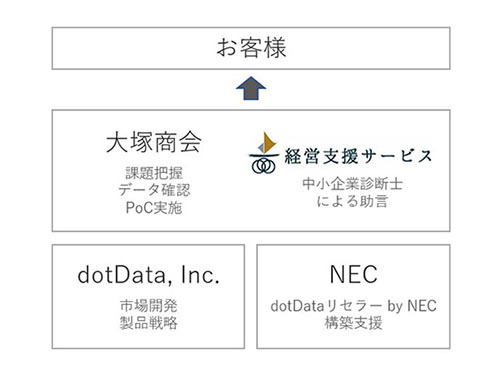 そこで今回、3社は共同で企業へのdotDataによるAI分析の積極的活用に向けて協議を重ね、大塚商会が保有するdotData環境を利用したAI分析サービスを開発した。