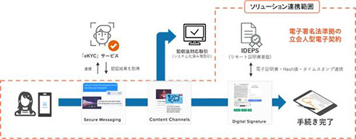 さらに、今回IDEPSとの連携で実現した電子署名法準拠のデジタル署名機能によって、従来時間を要した各地に点在している複数の相続人による遺産分割協議書への押印などもオンライン上で手続きができ、相続完了までの期間を大幅に短縮、顧客満足度の向上に寄与する。相続完了後もそのまま連携ソリューション上で資産運用の相談など、アフターフォローまで対応できるため、End-to-Endの継続したコミュニケーションが実現できる。