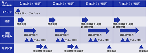 また、6カ月間を四つのステップで区切り、ステップごとに研修受講・研修で習得した内容を実践する課題への取り組み・進級試験という流れで着実に理解を深めることができる構成としている。入学時には、RPAやAI-OCRの前提知識が不要。同社のRPA導入・運用ノウハウを研修・学習計画に織り込むことで、RPA、AI-OCRを扱う即戦力となる人材として必要な知識と実践力の定着をサポートする。