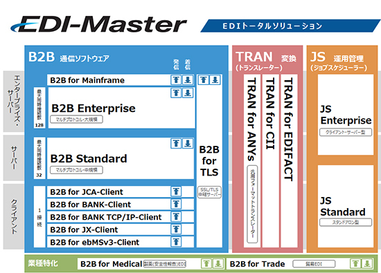 また、ラインアップ刷新の発表に加えて、製造・流通・金融の大手企業のインターネット対応として、エンタープライズモデルのEDI-Master B2B Enterpriseをリリースする。