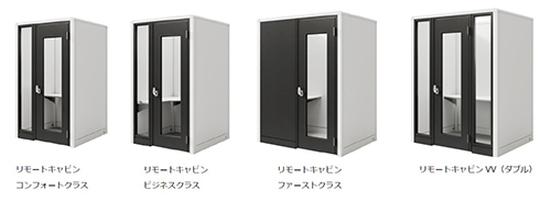 Remote cabinは、(1)内寸1205mm四方の長時間使用を想定した快適設計、(2)抗菌効果のあるHealth Bright Evolutionコーティングによる感染対策、(3)大掛かりな工事が不要な組み立て式による短時間での設置、(4)1人用モデル3クラスに加えて2人用モデルの品ぞろえによる多彩な働き方への対応、などによって柔軟で快適なオフィス環境を提供する。