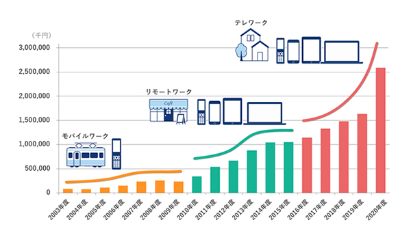 一方、「不動産」「製造」「建設」などの業界への新規導入には大きな変化は見られず、20年度の各業界のシェアはそれぞれ10%以下にとどまる結果となった。現場での作業が必要不可欠な業界では、コロナ禍を契機としたテレワーク推進は限定的であることがうかがえる結果となった。
