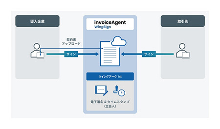 invoiceAgent WingSignは、既存システムを変更せずに契約書の作成・確認・署名から保管管理までの全てを電子化し、ペーパーレスやハンコレスを促進する。契約業務の電子化による効率化に加えて、契約書や商取引の過程で流通する関連文書の電子保管で一元管理が可能。ペーパーレス化と内部統制強化をサポートする。