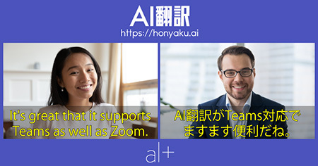 今回の対応によって、Microsoft Teamsビデオ会議の映像にリアルタイムで翻訳字幕を表示できるようになった。なお、AI翻訳はZoomにも対応している。
