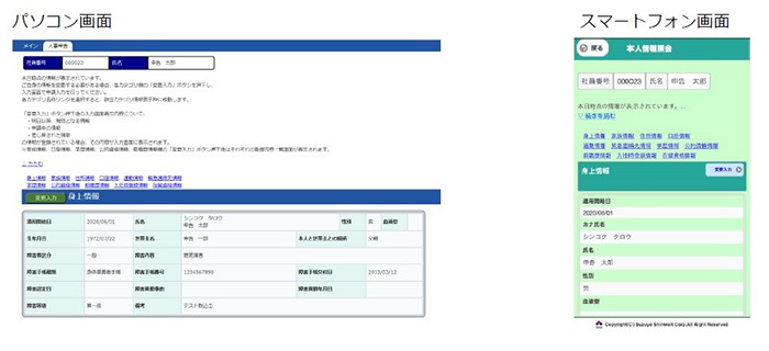 また、「管理者機能」として、社員情報照会、個人情報反映・再戻、人事情報データ入出力、電子年調申告データ連携、従業員へのメール配信などの機能を提供する。