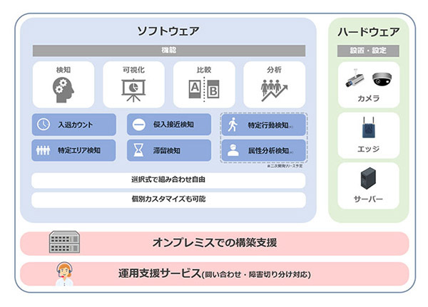 今回、顧客が必要とする「AIによる画像解析機能」を個別に選択し、組み合わせることができるパッケージソフトウェア(管理アプリケーション)を独自で開発。必要なハードウェアと導入後のサポートも含めたオールインワンのソリューションとしてオールインワンAI画像解析パッケージを提供する。同ソリューションは、オンプレミスで提供するため、顧客の環境に合わせて構築することができる。