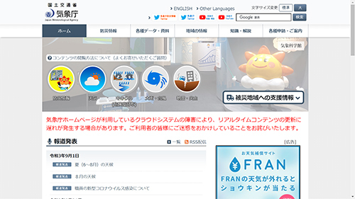 今回の障害で気象庁は同日、「リアルタイムコンテンツの更新に遅れが発生する場合がある」とのコメントをホームページに掲載。NTTドコモは、dメニューやdマーケットなどの一部サービスが、同日午前9時ごろから一時利用しづらくなったと発表した。(齋藤秀平)