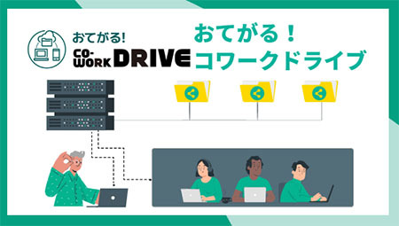 おてがる!コワークドライブは、法人向けクラウドストレージで、中堅・中小企業のDX推進をサポート。オンプレミスと同じフォルダー構成(ドライブマウント)で、社外ユーザーとのファイル共有もURLリンクやプロジェクトフォルダーで可能となる。