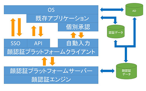 新製品は、使用時の認証を一要素のみで行っている既存アプリケーションに対し、顔認証技術を用いて二要素認証するためのプラットフォーム。アプリケーションの起動時または認証操作時に、ユーザーIDに加え顔認証を連携してユーザー認証を行う。ユーザーID認証と顔認証を一貫して行うため、ログイン時の煩雑さがなく、スピーディーでセキュアな二要素認証を実現する。