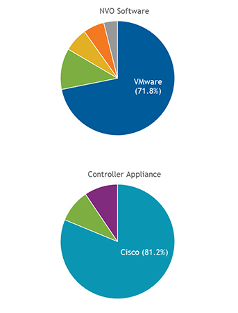 首位のヴイエムウェアは、コロナ禍でオンプレミスデータセンターへの投資を保留する企業が相次ぐ中でVMware Cloud on AWSに代表されるパブリッククラウド上でヴイエムウェア環境を稼働するソリューションでネットワーク仮想化/自動化プラットフォームの売り上げを伸ばしプラス成長を維持した。ネットワーク仮想化/自動化プラットフォーム市場を提供形態別で分類したNVO(Network Virtualization Overlay)ソフトウェア市場で、20年も71.8%のシェアを獲得したという。