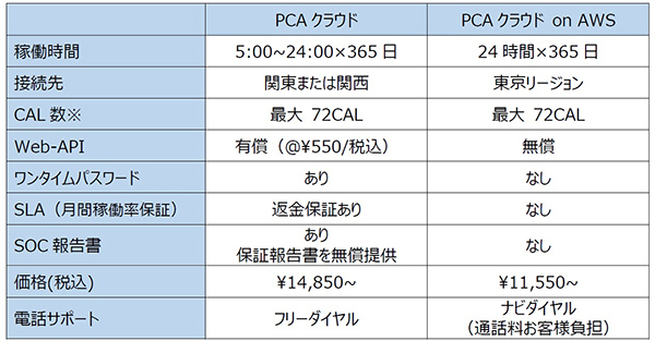 サービス開始当初から本番環境での負荷テストを継続してきたが、今回、72CAL同時接続時でもPCAクラウドと同程度のパフォーマンスを提供できると判断し、同時利用ライセンスを拡充する。これにより、複数名の業務担当者による運用を実現し、従来よりも大規模な運用ニーズに応えることができる。価格は1万1550円からとなる。