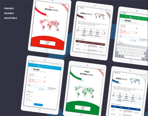主な特徴は、イラストを用いた親しみやすいデザインと入力内容が分かりやすいUIにより、誰でも簡単に入力を進めることが可能。手続きに必要な証明書類は、送金依頼とまとめてスマホなどのカメラで撮影し送信することができる。また、PDFデータをアップロードし送信することも可能となっている。
