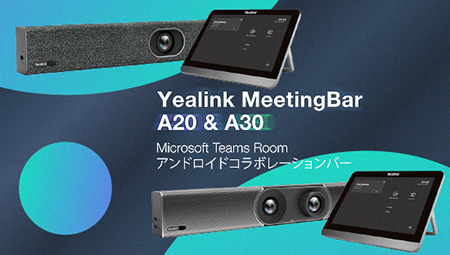 主な製品の特徴として、UCソリューションの「Yealink ミーティングコラボレーションBar A20&A30」は、カメラ・マイク&スピーカーを一体化し、セッティングやメンテナンスを容易に行うことができる。タッチパネル&ビデオバーはケーブルでの接続が不要で、ワンタッチで会議への参加が可能。カメラはAI機能&スピーカートラッキング&オートフレーミングに対応し、ベストの構図をデバイスごとに切り出す。