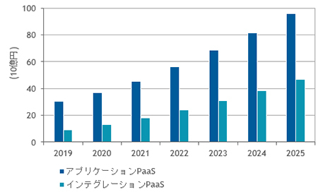 20~25年のCAGRは29.3%と予測している。今後、企業の業務でのクラウドサービスの利用がさらに増え、複数のクラウドサービス間のAPIやデータの連携需要が高まっていくとみられ、インテグレーションPaaS市場はさらに拡大を続けていくとみている。
