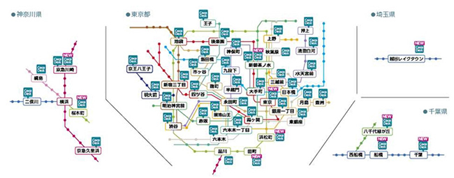 千葉県では、千葉都市モノレール「千葉駅」と東葉高速鉄道「八千代緑が丘駅」、「イオンモール船橋」に1台ずつ計3台。埼玉県では、「イオンレイクタウンmori」に1台を設置する。また、川崎市のショッピングモール「三井ショッピングパーク ラゾーナ川崎プラザ」に2台、オフィスビル「川崎テックセンター」に1台、「クロスゲート」(桜木町)に2台。都内で、オフィスビルの「田町センタービル」に2台、「御茶ノ水ソラシティ」に1台、「文化放送メディアプラス」(浜松町)に2台、「丸の内トラストタワー本館/N館」に2台を新たに設置する。