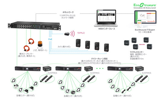 これにより、従来のデータセンターのみならず、小売店舗やオフィスなど、エッジ拠点にサーバーやネットワーク機器が必要とされる環境でも、ITファシリティ管理担当者が現場に常駐できず監視の目が行き届かないリスク、温湿度などの環境変化の見落としを排除し、遠隔モニタリングや求められる自動化を実現する。
