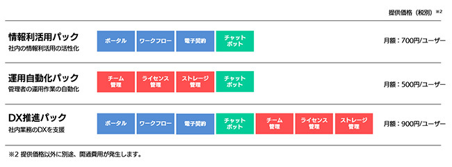 新パッケージは、SBTが実施した顧客アンケートの中から特にニーズの多かった情報共有促進機能や社内申請業務の電子化、チャットボットによるヘルプデスク対応機能などをMicrosoft Teams上にアプリ化し、課題別のプランにしたもの。社内情報を集約し利活用を推進する「情報利活用パック」、設定や管理を自動化し管理者の運用負荷軽減を実現する「運用自動化パック」、その両方を合わせた「DX推進パック」を用意した。