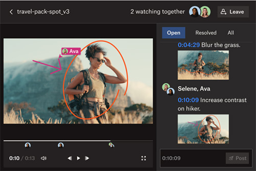 Dropbox Replayでは、すでにDropboxで行っている動画の保存や共有のワークフローに簡単に組み込むことができる。チームメンバーからのフィードバックを全て1カ所にまとめることができるほか、コメントを動画のバージョンごとに保存されて解決済みのフィードバックにマークを付けることで対処漏れをなくすことができる。作業における承認の有無が一目で分かることに加え、過去のバージョンを管理しながら新しいバージョンをアップロードすることもできる。