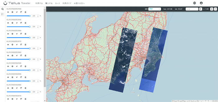 「Tellus Satellite Data Traveler」の操作画面イメージ