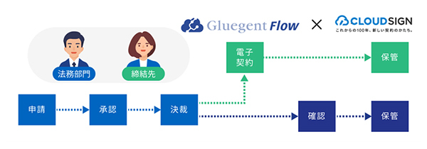 今回、これらのサービスとクラウドサインを連携した電子契約連携 for クラウドサインにより、契約の決裁から押印・保管までを一気通貫にクラウド環境で管理できるようになる。これによって、ワークスタイルの影響を受けず迅速な契約処理を可能にし、契約管理業務の負荷を削減。契約にかかる業務プロセス全体のデジタル化を通じて、企業のDX推進と利便性向上を実現する。