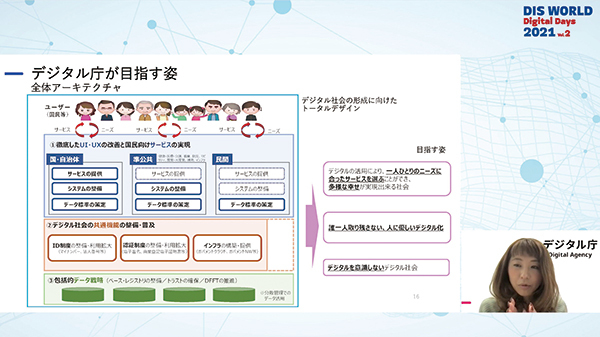 2日目にはデジタル庁の津脇慈子・企画官が登壇し、「誰一人取り残されないデジタル社会の実現」を目指す同庁の取り組みを紹介。津脇企画官は、DXが求められる背景として、ビジネス環境の不確実性が高まっていること、生産年齢人口の減少が続き人手不足が恒常的な課題となっていることを挙げる。
