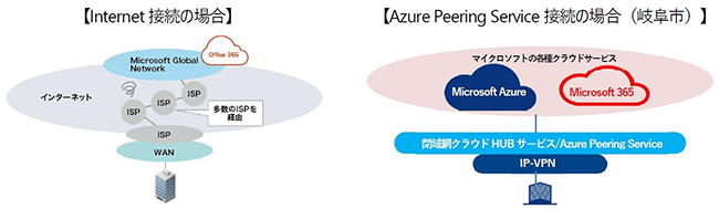 今回、マイクロソフトが一昨年にサービス提供を開始したAzure Peering Serviceを活用したMicrosoft 365向けサービスについて、岐阜市から活用検討の照会があり、日立システムズで検討と提案を行い採用された。Azure Peering Serviceは、Microsoft 365、Microsoft Dynamics 365、サービスとしてのソフトウェア(SaaS)サービス、Microsoft Azureなどで構成されるクラウドサービス(PaaS/SaaS)への接続を強化する。顧客は特定のリージョンで適切に接続されたパートナーサービスプロバイダーを選択でき、マイクロソフトの各種クラウドサービスへの最適なルーティングにより、堅牢で信頼性が高く、遅延の少ない最適化されたネットワーク接続を可能とする。