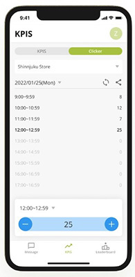 Clickerは、Flowのモバイル版アプリであるFlow for mobileに、新たに実装する機能。「来客数」「接客数」などのKPIをClicker内で設定し、そのフィールドの「+/-」ボタンをタップすることで数値を記録する。交通量調査などで使われる手動カウンターの記録データをFlowのダッシュボードと連携し、デジタルに活用できる。また、タイムスタンプを付与するため時間帯別の精緻なデータを記録することができ、アナログ管理よりも高い作業効率性を実現する。