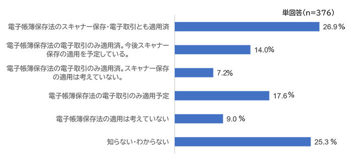 今年1月1日に施行された改正電帳法により、電子取引データの電子保存が義務化された。しかし、多くの企業での準備不足などを背景に2年間の猶予期間が設けられ、23年末まで期限が延長された。ALSIでは、電帳法の施行から約3カ月が経過した後に企業の適応状況を把握するため、そして今後の企業の電帳法適用を推進していくため、今回の調査を実施した。