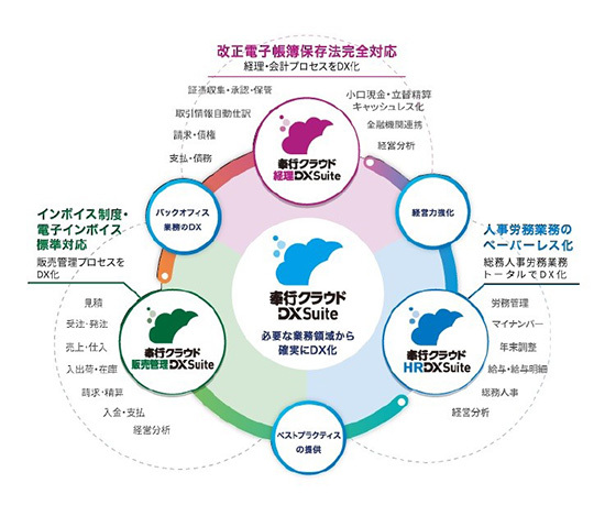 「奉行クラウド DX Suite」=https://www.obc.co.jp/bugyo-cloud/dxsuite/
