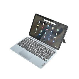 Chrome OSを搭載した脱着型の2-in-1 PCで、特徴的なデュアルトーンデザインに、ミスティブルーのカラーを採用している。10.95型の狭額縁ディスプレイは、2K高解像度で鮮明な画面表示を実現。ペン入力に対応し、キックスタンド付きマグネットカバーにはペンホルダーを備え、ペンを紛失してしまう心配がない。
