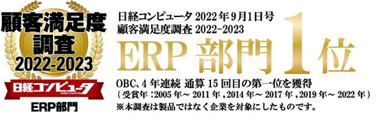 OBC、日経コンピュータ「顧客満足度調査2022-2023 ERP部門」で第1位を獲得