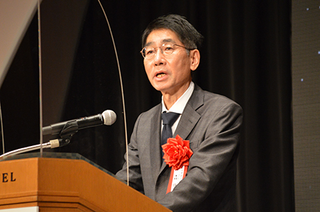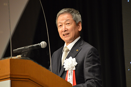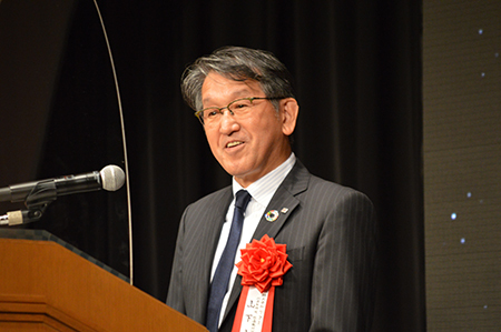来賓として登壇したリコーの山下良則社長は「大塚商会とは50年以上の付き合いになるが、まさに最強のパートナーだ」と語り、膝と膝を突き合わせて関係を構築してきた過去を振り返った。また、「中小企業の変革を支える責任がある」という大塚社長の言葉を紹介し、「リコーも同じビジョンのもと、ともに日本経済を支えていきたい」と語った。