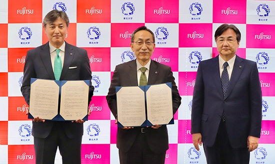戦略提携のビジョンとして掲げるのは「自助・公助・共助により互いに支え合う社会」だ。記者会見で富士通の堤浩幸・執行役員SEVP JapanリージョンCEOは「すべての人が目指したい健康像を認識し、絆を重視した新しい関係性を構築していくためにサポートしていく。DXで時間や場所の制約を排除する、フレイルスパイラル(加齢で心身の活力が低下することによる負の循環)を防ぐ、早期に必要最小限の受診でデータに基づく健康状態のリスク分類を行う。こうした世界観を東北大学と共に具現化し、社会実装に向けて歩みを加速していきたい」と語った。
