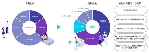 運用支援では、運用のサポートをはじめ自動化の適用範囲のさらなる拡張、新しい作業の自動化など、顧客のIT運用の自動化を継続的にサポートする。