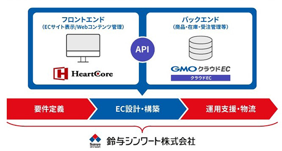 また、複数サイトの運営・一元管理に最適なGMOクラウドECとHeartCoreによるサイト構築を、両サービスの開発パートナーとしてCMSとECサイト構築に豊富な経験がある鈴与シンワートが推進する。