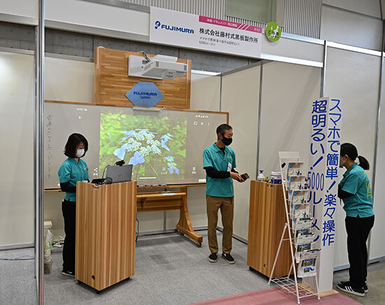 電子黒板事業をアピールする藤村式黒板製作所のブース