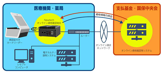 「Newtechオンライン資格確認端末」=https://www.newtech.co.jp/products/other_product/medi-authpc/
