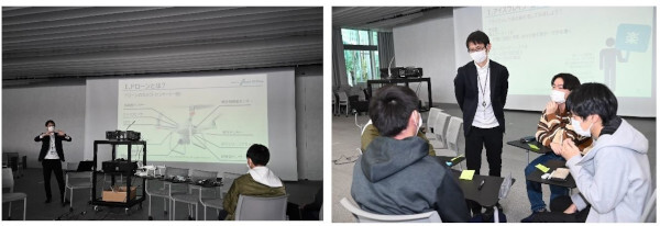 その一環として今回、日本UAS産業振興協議会が発行する「無人航空機操縦技能証明証」「無人航空機安全運航管理者証明証」を取得している同社の大澤諒氏が講師を務め、ドローンの基礎知識や操縦体験、ドローンを活用した新しいビジネスを考案するワークショップなどを実施した。