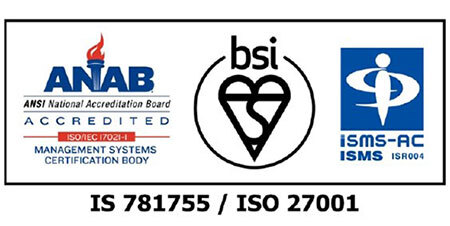 「ISO/IEC 27001:2013/JIS Q 27001:2014」は、情報の機密性/完全性/可用性を保護し、企業や組織が所有する情報資産を守るための情報セキュリティマネジメントシステムの国際標準規格。組織体制、リスクマネジメント方針の確立と運用について、公正・中立な第三者機関が審査し認証している。