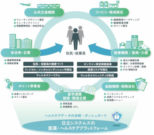 日立システムズは、要配慮個人情報である医療情報を安心安全に運用できる3省2ガイドラインに対応したアマゾン ウェブ サービス(AWS)が提供するクラウドサービスのプラットフォームとPHR情報を格納できるPHR基盤を提供している。