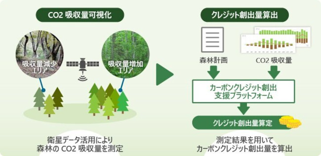 同社では今後、今回の実証実験で得られたノウハウや、国内では前例の少ない数千haという広大なエリアで行ったボランタリークレジットの創出ナレッジを活用し、衛星データによるCO2吸収量の可視化からクレジット取引までをトータルで対応可能なサービスを2024年度中に提供する予定。