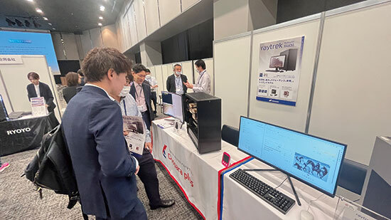 会場でX4630を紹介した井田副社長は、高解像度の映像編集、ディープラーニング、3D CAD、AI開発など適した用途を説明し「当社の得意分野であるカスタマイズも含めて、さまざまなことができるワークステーションに仕上げた。大学や研究機関でのゲノム開発、製造業でも活用できる」とアピールした。会場では、X4630などの新製品を並べたブースが設けられ、参加者が性能などについて質問する様子が見られた。
