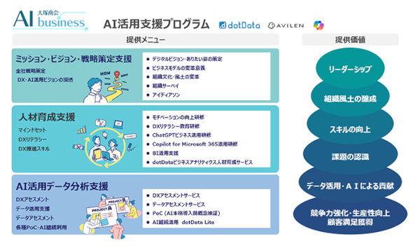 今回、新たな研修メニューとして、データ活用のために必要な「dotDataビジネスアナリティクス人材育成サービス」と、生成AIを活用するためMicrosoft Copilotの導入を予定している企業に「Copilot for Microsoft 365活用研修」を提供する。企業のAI活用とAI人材育成を支援することで「AIの民主化」を推進していく。