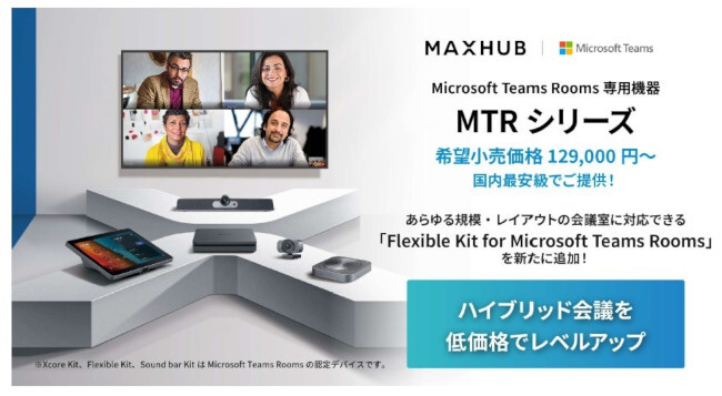 Microsoft Teams Rooms専用デバイスは、会議室に常設した端末から簡単にウェブ会議へ参加できるセキュリティー性の高いソリューション。しかし、その専用デバイスは会議室に常設であるため、会議室のレイアウトや規模によっては、十分にデバイスの性能を生かしきれない場合もある。そこで今回、MAXHUBブランドによるMicrosoft Teams Rooms専用機器MTRシリーズに、会議室のレイアウト・規模に関わらず対応できるFlexible Kit for Microsoft Teams Roomsを追加した。